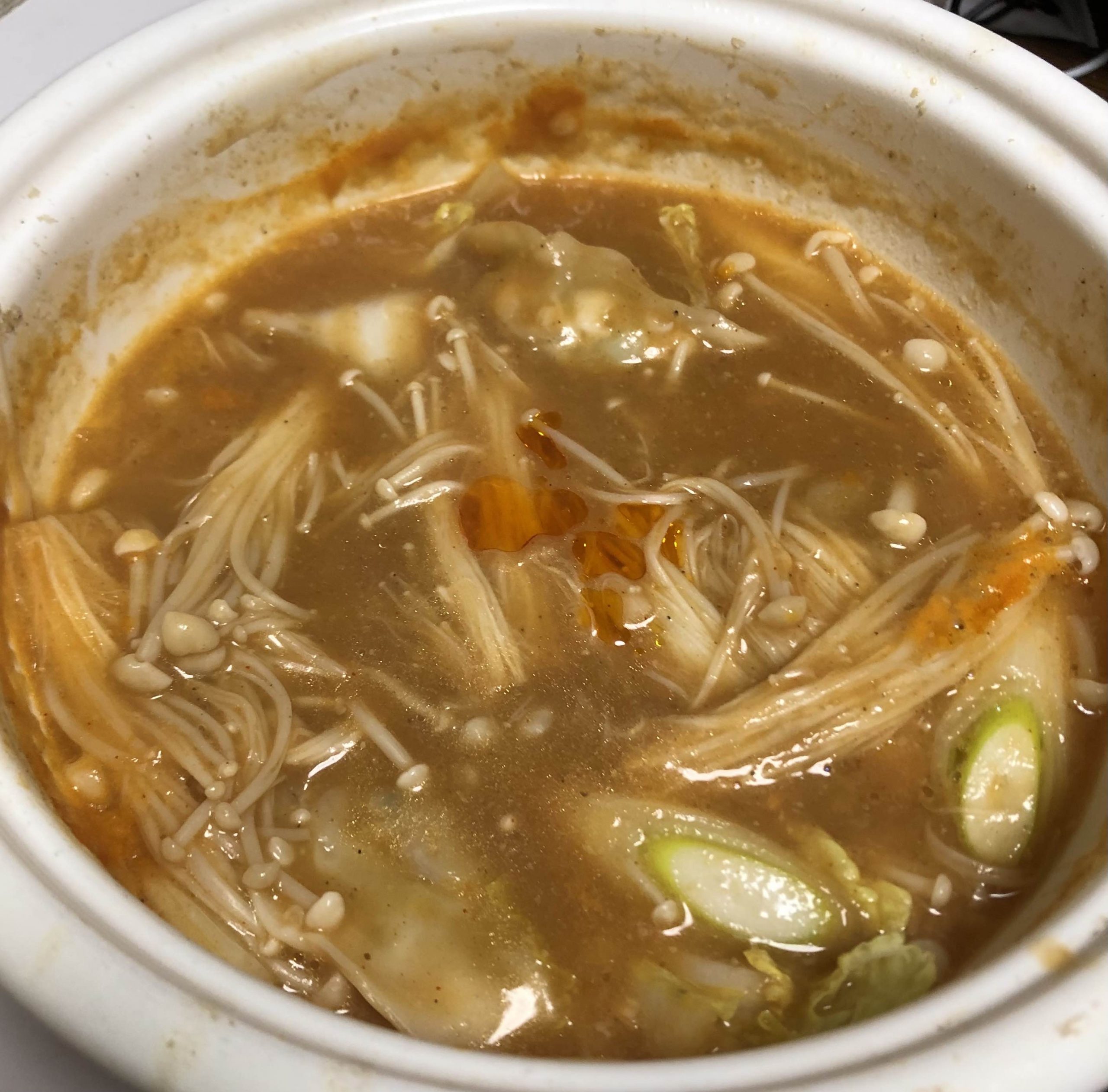 おまけに、鍋の中へ放り込んだ餃子についていたラー油などを浮かせてごらん!!